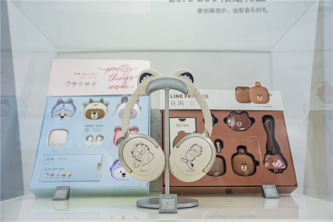 (漫步者花再LINEFRIENDS联名款限定耳机礼盒内含7种产品。黄政正 摄)